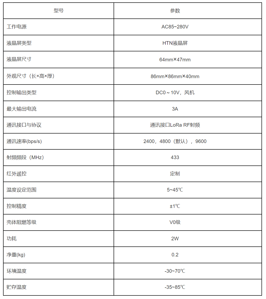 1、通信接口:LoRa無(wú)線RF, 通信協(xié)議: Modbus RTU協(xié)議;